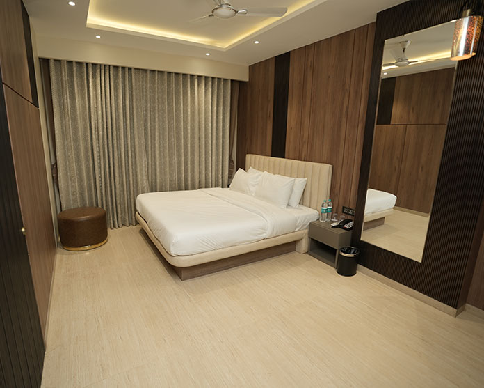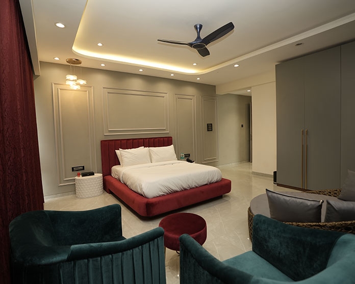 Warm, airy rooms nestled in lush greenery offer serene views, modern comforts, and a tranquil retreat, perfect for families or corporate groups seeking a getaway.